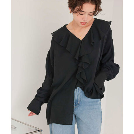 ・フリルデザインが可愛い・丈が長めなので気になるお腹周りを隠せる・表面感のある素材で高見えする[型番:AFXP4293]