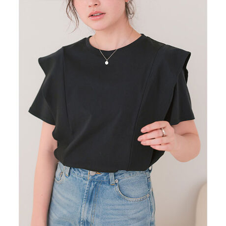 汗染み防止ラッフルスリーブTシャツ