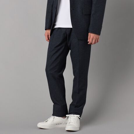適度にフィットしたシルエットのノータックテーパードパンツです。