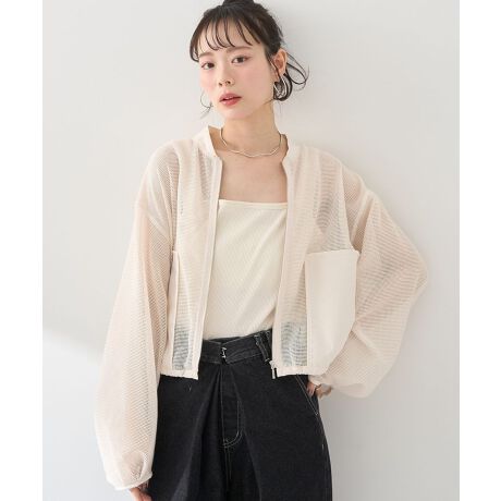 トレンドのメッシュ素材に布帛ポケットがポイントのジップアップブルゾン。ワイドシルエットにコンパクト丈で幅広いボトムとバランスよく着こなしていただけます。ふんわりとしたボリュームスリーブで甘口なニュアンスをプラス。インナーと組み合わせてレイヤードアレンジが楽しめるおすすめのアイテムです。