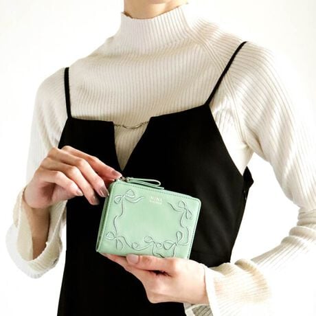 ニナ リッチのコレクションからリボン柄を抽出し、お財布にあしらったシリーズ。