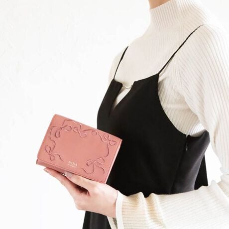 ニナ リッチのコレクションからリボン柄を抽出し、お財布にあしらったシリーズ。