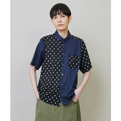 【素材】綿特有の肌触りの良さと程よい軽さが特徴の綿ローンをベースに2種類のドット生地を組み合わせています。【デザイン】ベーシックなシャツブラウスはタイト過ぎない程よいユトリと堅すぎない柔らかな印象に仕上げています。大胆に2種類の生地を使いながらも色のトーンを合わせることで馴染みの良い印象に仕上げています。*こちらの商品はユニセックス商品です。【ブランド情報】FRAPBOIS/フラボア2001年にブランドスタート。「大人げない大人の服」をコンセプトに、大人が着るリラックスしたデイリーウェアを提案するコレクションブランド。レディースとメンズのアイテムをご用意しています。