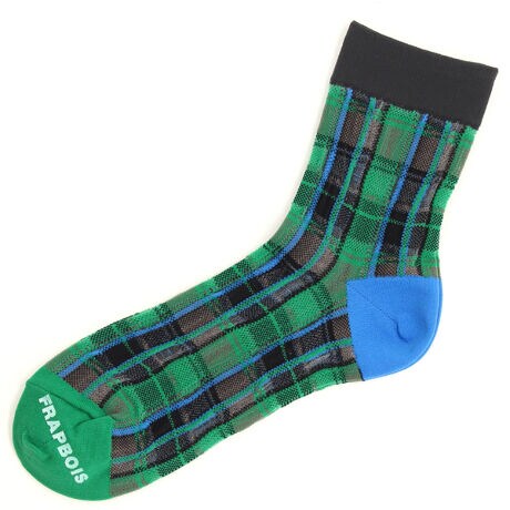 【素材】発色が良くストレッチ性に富んだ糸を使ったチェック柄ソックス【デザイン】洋服にもあるオリジナル配色のマドラスチェック柄をソックスに落とし込んだデザイン。つま先とかかと、履き口の配色がアクセントになっています。Fサイズ:22.5-24.5cm【ブランド情報】FRAPBOIS/フラボア2001年にブランドスタート。「大人げない大人の服」をコンセプトに、大人が着るリラックスしたデイリーウェアを提案するコレクションブランド。レディースとメンズのアイテムをご用意しています。