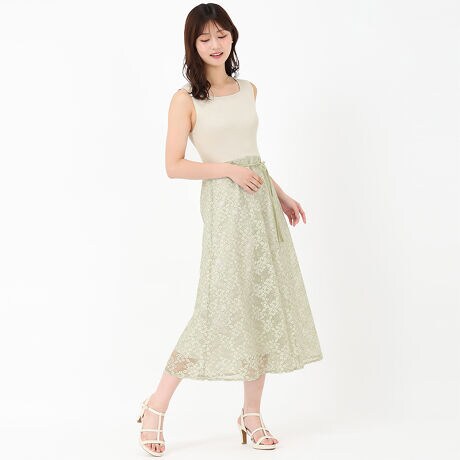 レース切り替えが華やぐ、フェミニンムード漂うワンピース