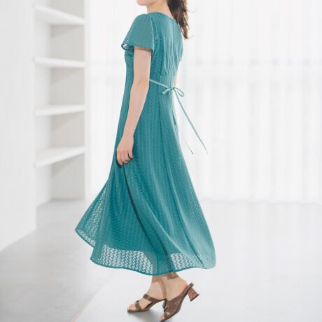 繊細なバルファス風レースが、クラシカルで女性らしい雰囲気を醸し出すワンピース。