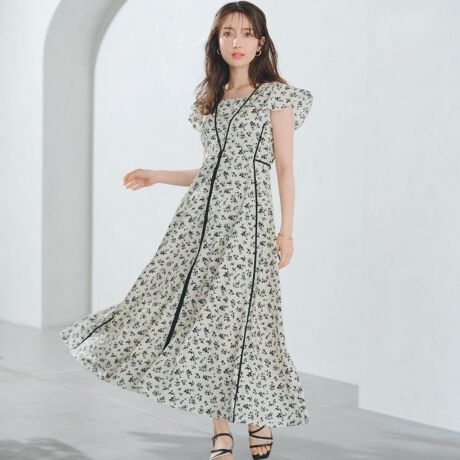 2025春夏新作 小花柄パイピングワンピース