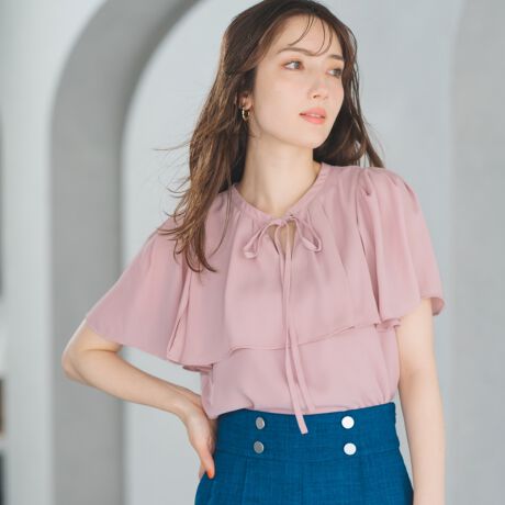 ふわりと揺れるケーブデザインがフェミニンなブラウス。ボウタイリボンも上品な愛らしさをプラスしてくれます。シーズンらしい軽やかな素材感でスタイリングも爽やかな印象に。普段使いはもちろん、仕事やデートなどのシーンにも活躍してくれるアイテムです。■fabric透け感[やや有り]裏地[無し]伸縮性[無し]生地の厚さ[薄手]