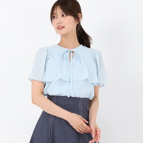 ふわりと揺れるケーブデザインがフェミニンなブラウス。ボウタイリボンも上品な愛らしさをプラスしてくれます。シーズンらしい軽やかな素材感でスタイリングも爽やかな印象に。普段使いはもちろん、仕事やデートなどのシーンにも活躍してくれるアイテムです。■fabric透け感[やや有り]裏地[無し]伸縮性[無し]生地の厚さ[薄手]