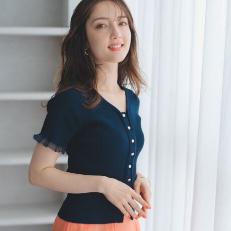 2025春夏新作 シアーフリル重ね着風2wayニット