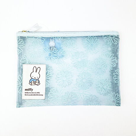 ミッフィー miffy フラットポーチ ブルー フラワーシリーズ