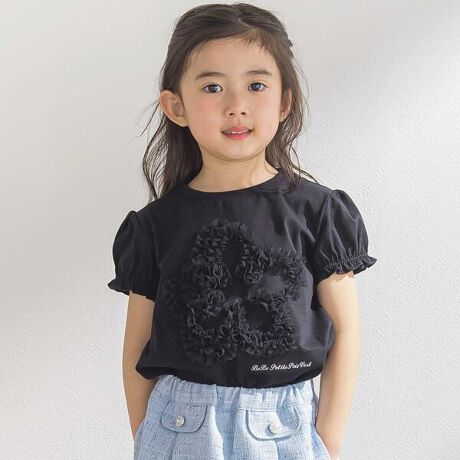 オーガンジー花モチーフパフスリーブTシャツ(95~160cm)