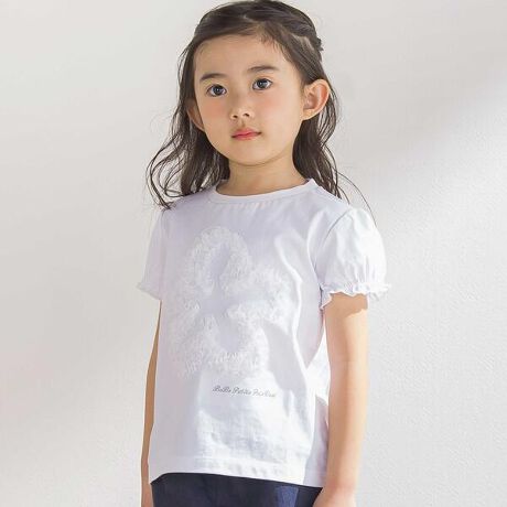 オーガンジー花モチーフパフスリーブTシャツ(95~160cm)