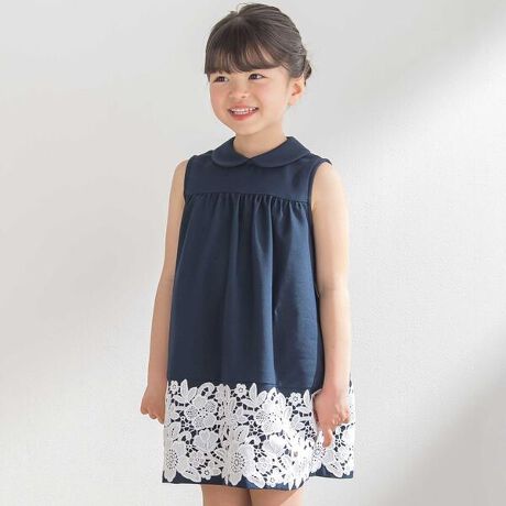 裾にあしらわれた豪華な花柄レースが愛らしいアクセントになったワンピースです。