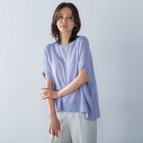 ゆったりとしたドルマンスリーブがこなれ感を演出する、
