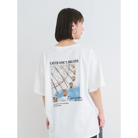 風景写真とロゴをバックプリントしたコーデのアクセントに映えるTシャツ。