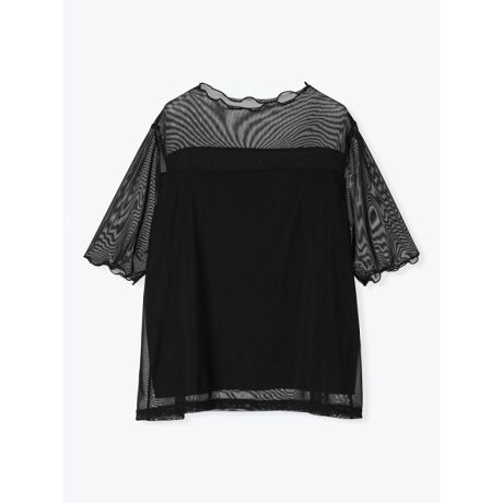 ほんのり透けるシアー素材でトレンド感を演出するトップス