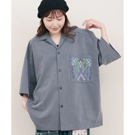 チャコールグレー/ポケットにウエスタン調の刺繍を施し、着回し力のあるデザイン。