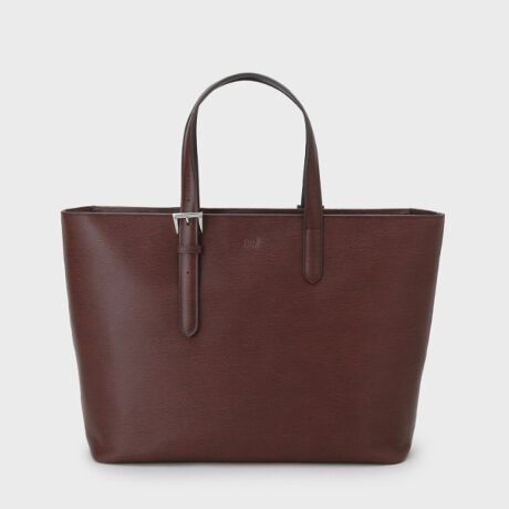 傷の目立ちにくい型押しを施した、品のあるオールレザーのトートバッグ。