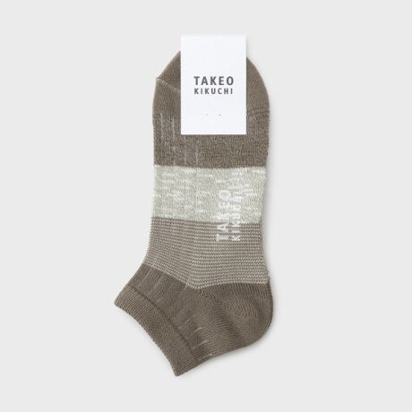 異素材のコントラストが楽しめるスラブ糸とドラロン綿の素材切り替えボーダーショートソックス。