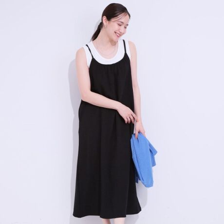 ぽこぽことした素材感とギャザーによるドレープ感が体型を拾いにくく、1枚でも安心してご着用いただけます。
