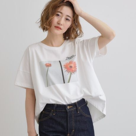 フォトが華やかなので、デニムでさらりと合わせても◎