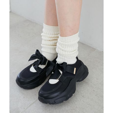 リボンとスポーティーなボリュームソールを組み合わせた女の子スニーカー。