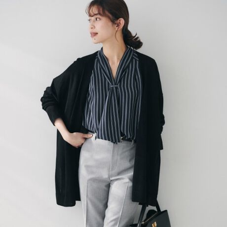 釦レスなので軽やかに動きが出やすく、大人カジュアルなスタイリングも楽しめます。