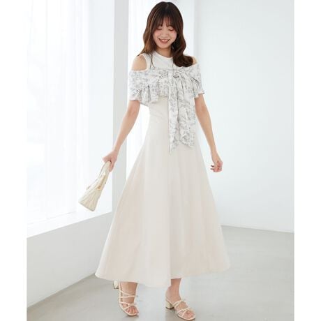 ワンピース+肩あきデザインなので1枚で着ていただくと着映え間違いなし。