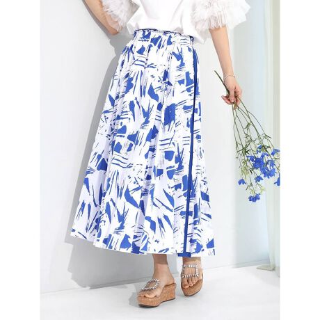 大胆なブラッシュプリントが印象的なフレアスカート。