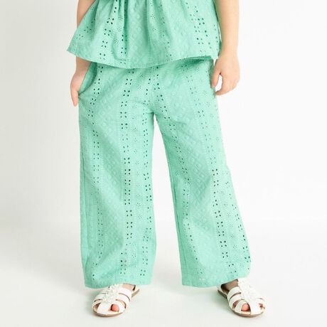 可愛らしさと実用性を兼ね備えたスカラップ刺繍パンツ