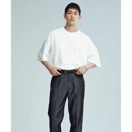 今っぽいゆったりとしたリラックス感の中に素材の上品で頼りがいのある印象を加えた大人のビッグTです。