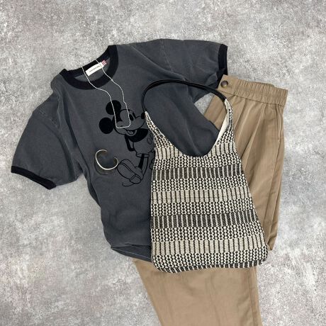 ・やわらかな編み素材で軽く、肩にかけやすいデザインもポイントです