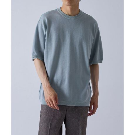普通よりもややゆとりのあるサイズ感で、キレイなスタイリングにも合わせやすい半袖ニットソー。