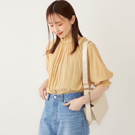 女性らしいとろみと上品な光沢感が特徴のサテンブラウス。