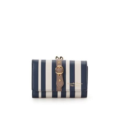 ◇Samantha Thavasa Petit Choice(サマンサタバサプチチョイス)のストライプフロントベルト 口金折財布▼デザイン・爽やかなストライプ柄がポイント。・ストライプの幅をランダムにすることで大人っぽく、動きのあるデザインに仕上げました。・ベルト部分はキャメル系の色味で合わせ、遊び心のある配色になっています。▼機能性・小銭入れはがま口で開けやすく、コインの出し入れもしやすい仕様。・収納力抜群なので、キャッシュレス派の方にも現金派の方にもおすすめのアイテム。・お札入れが二つに分かれているので仕分けしやすく使いやすいのも嬉しいポイント◎・折財布ですが、お金もカードもしっかり入るので、長財布からの買い替えにもぴったり。▼収納力・カードポケット×6・フリーポケット×2