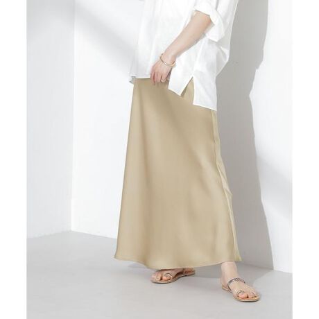 オンオフで楽しめる大人レディな仕上がりのサテンスカート