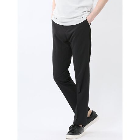 すすっきりとしたノータックのテーパードパンツです。ウエストはサイドシャーリングで着脱もスムーズ、着席時も窮屈感がありません。センタープレス加工、フロントファスナー、ベルト通し付き、前後ポケット付き、裾部分は加工済みです。(股下84cm・ミシンたたき)