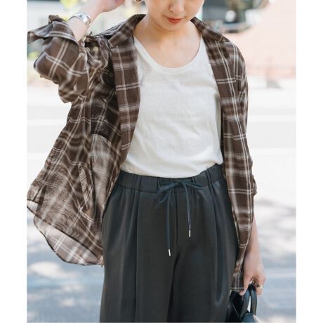 一枚でも着映えるけど、大人っぽい配色のチェック柄は着まわしやすく、涼しく今年らしい大活躍間違いなしの一枚です。