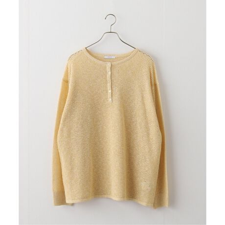 ゆったりとしたオーバーサイズのヘンリーネックがアクセントになっているメッシュニット。