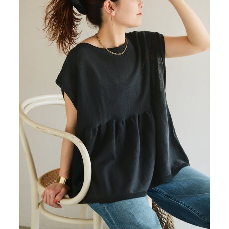 軽やかで涼し気な印象に編み上げたフレンチスリーブプルオーバー。