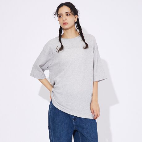 ニットのような凹凸感と柔らかな肌触りが特徴のワッフル素材を使用した5分袖Tシャツ。