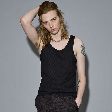 衿ぐりの中心から袖山の付け根までを広く取り、抜け感を表現したリブタンクトップ。アームホールを広く大きめにすることで、着用時の不快感を軽減したストレスフリーなサイズ感に仕上げました。インナー使いで品よく魅せる、大人のレイヤードスタイルに最適です。