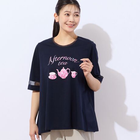 【洗える】ティーカップ柄 Aラインカットソー