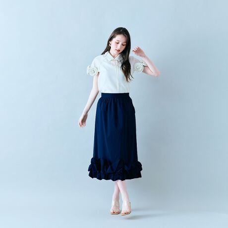 ・裾部分に大胆に施したギャザーが歩くたびに揺れ、華やかさのあるスカート。