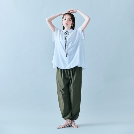 ・ボリュームのある裾バルーンデザインが新鮮な印象のブラウス。