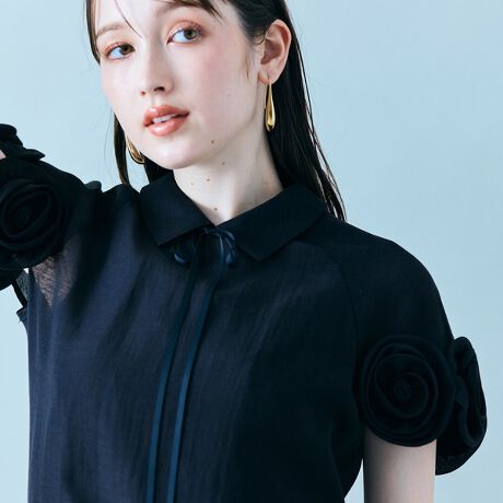・袖周りを華やかに彩るフラワーモチーフブラウス。