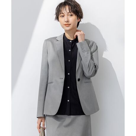 着丈が少し長めのテーラードジャケット。シンプルな一つボタンにすることでマニッシュになりすぎず、スタイリングの幅が広がるアイテムです。単品でボトムスをカジュアルにしても、同素材のスカートやパンツとの着合わせでセットアップとしても、お召し頂けるジャケットです。袖口は重ねスリット仕様で折り返し可能です。前年から肩回りに修正を加え、更に着用しやすいようにアップデートしています。カラーは、あか抜けた印象のライトグレー(#003)、きちんと感が増すネイビー(#075)の2色展開です。