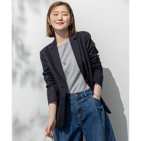 着丈が少し長めのテーラードジャケット。シンプルな一つボタンにすることでマニッシュになりすぎず、スタイリングの幅が広がるアイテムです。単品でボトムスをカジュアルにしても、同素材のスカートやパンツとの着合わせでセットアップとしても、お召し頂けるジャケットです。袖口は重ねスリット仕様で折り返し可能です。前年から肩回りに修正を加え、更に着用しやすいようにアップデートしています。カラーは、あか抜けた印象のライトグレー(#003)、きちんと感が増すネイビー(#075)の2色展開です。