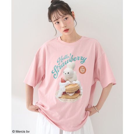 「ミッフィー」やうさぎとイチゴがデザインされたプリントTシャツ。